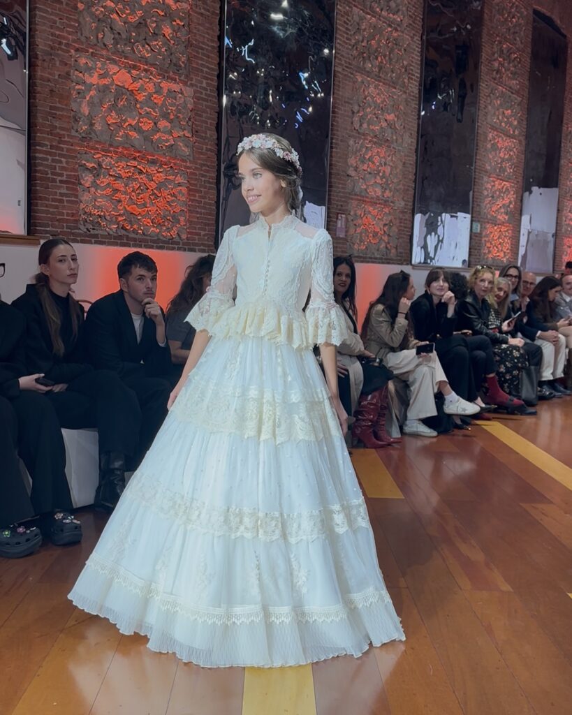 “Actually, our daughter is walking the runway today,” replied the father. And by daughter, that was not a 21-year-old model. Today marked the debut of Teressa Ninú’s collection for kids, and a first for me, as well – I had never seen a runway show with little girls in them. Teressa herself briefly walked out to say hi before the show, telling me how excited she was. What a proud moment for all of them, and what a special show to attend. Telemadrid, Madrid’s TV channel, was there, too, to film content with the designer and the little girls, and we all saw ourselves on TV the day after. Surely, the designs will be of success in Málaga, which is where Teressa’s atelier is based.