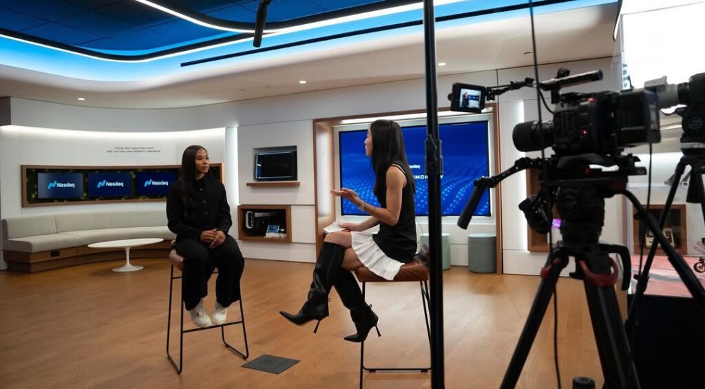 Interviewing Kelley O’Hara | Photo credit: Vanja Savic, Nasdaq